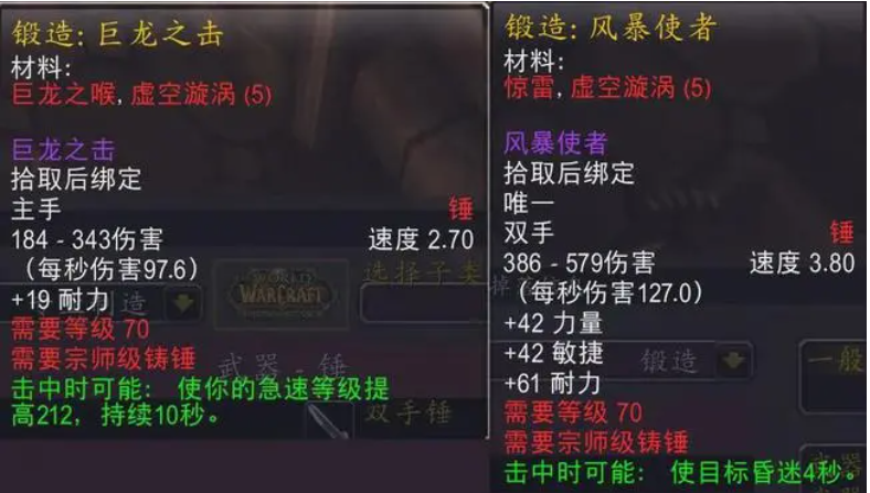 二、锻造3段武器。所有锻造2段武器都可以升级为3段武器,单手和双手武器所需升级材料皆为5枚虚空漩涡,所有做了2段武器的玩家几乎都会升级到3段,因此T5团本刚开前几周的虚空漩涡价格将会非常离谱,大家量力而行吧。