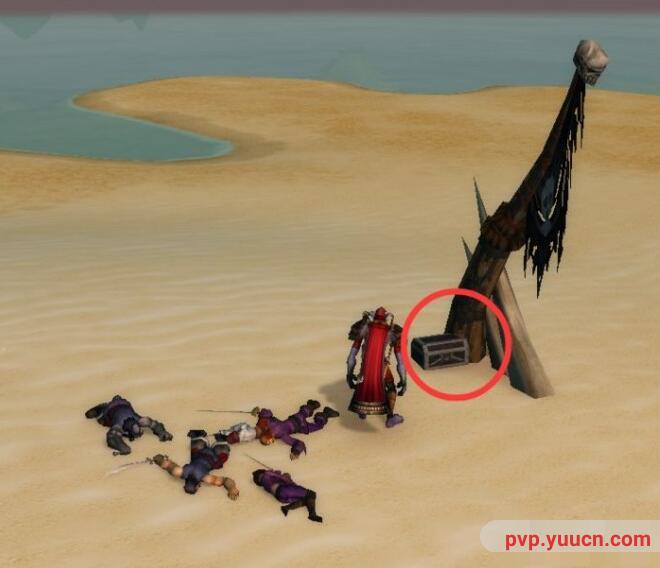 5.完成战斗后,在原本的海盗旗下方,这时候出现了一个宝箱。