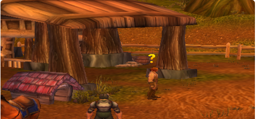 4、进入东谷场,就开始找“兰达尔。亨特”一会就看见了一个脑袋上有黄色问号的